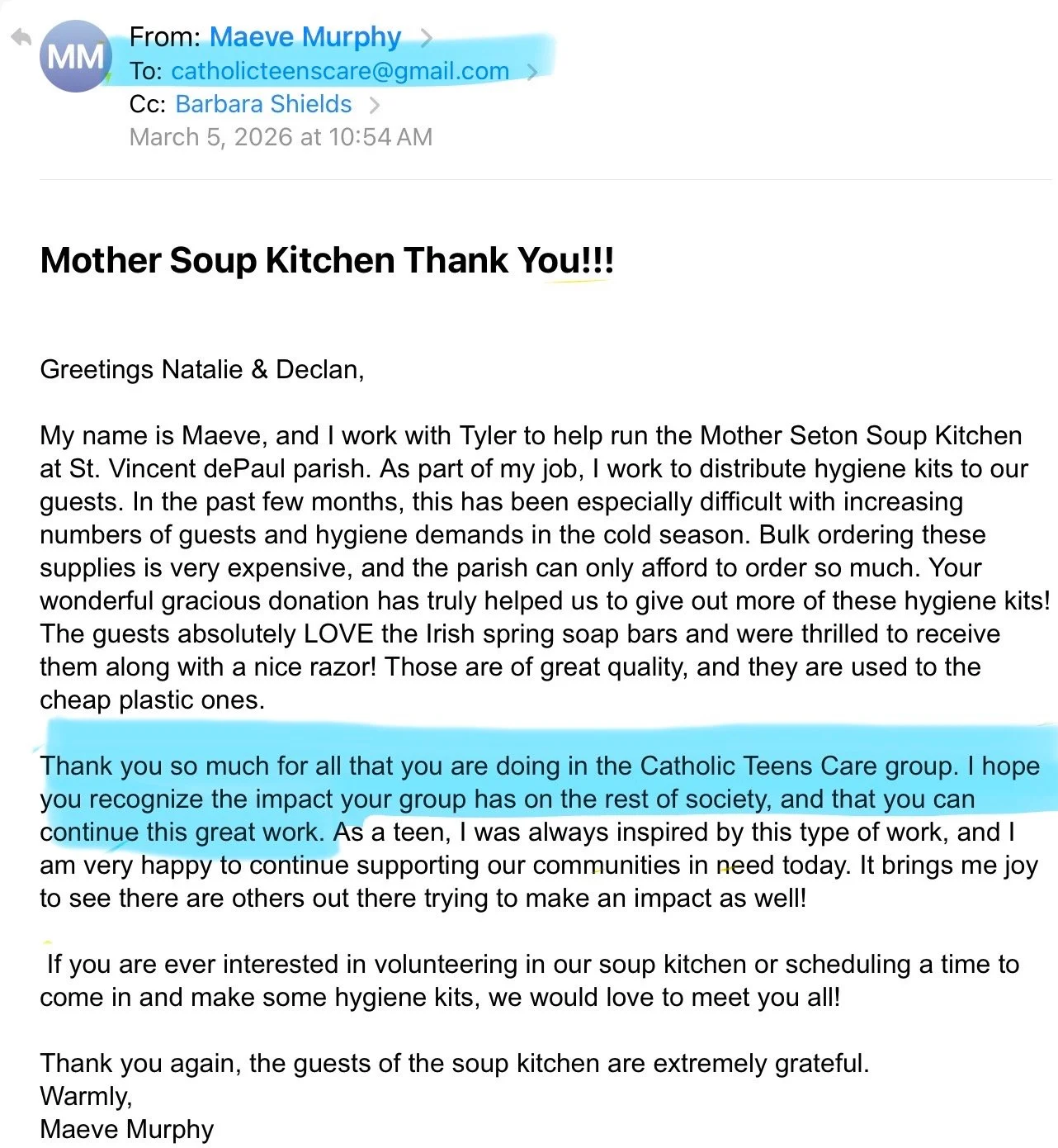 Mother Seton Soup Kitchen - Toiletry Donation 2026